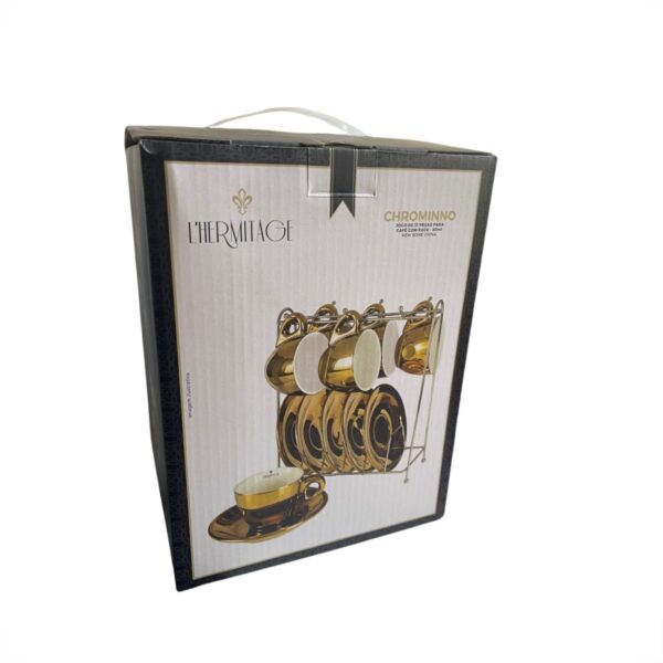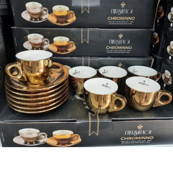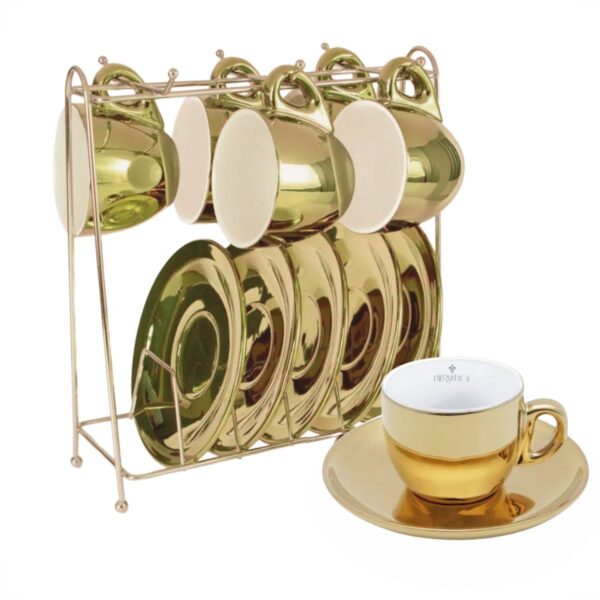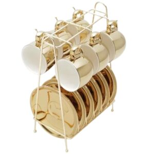 Xícaras para Café Porcelana Dourada Crominno 80ml 6un com Rack